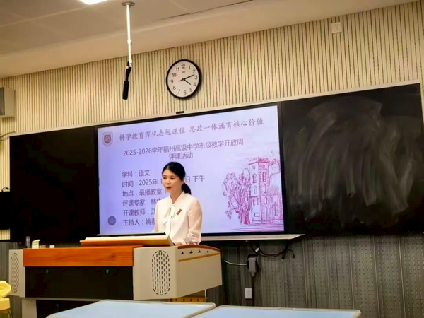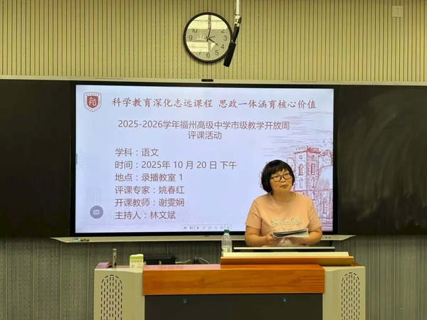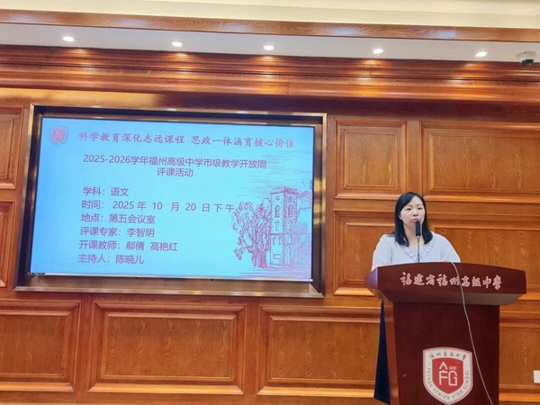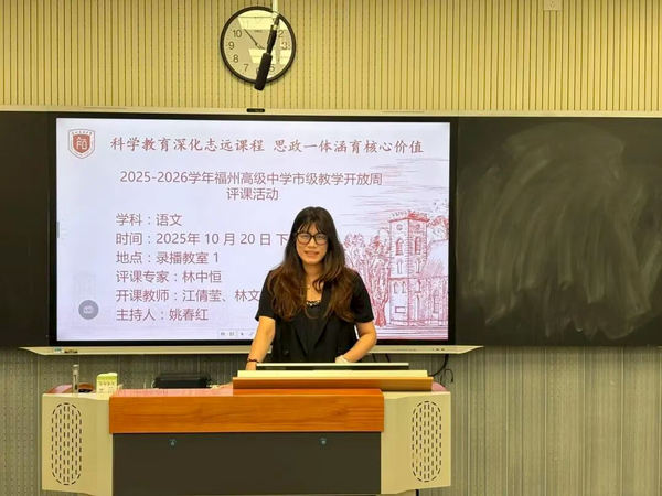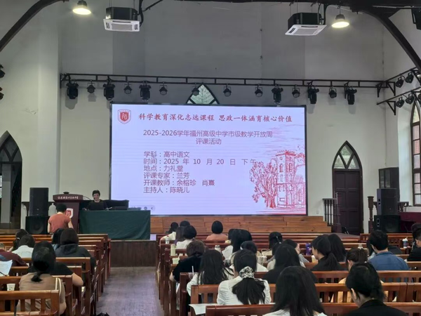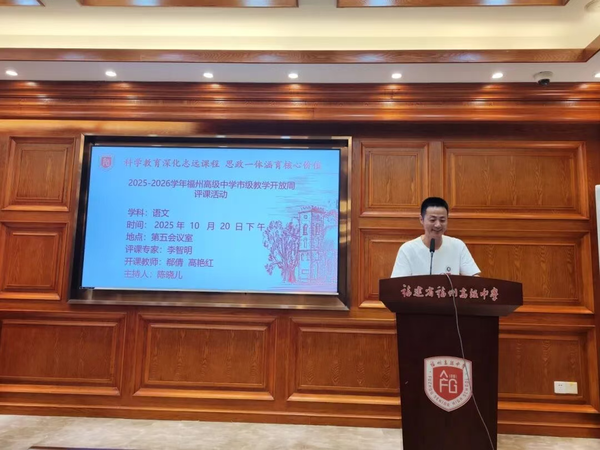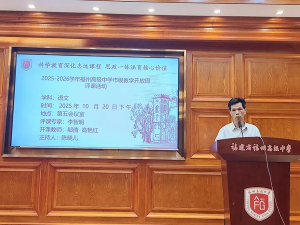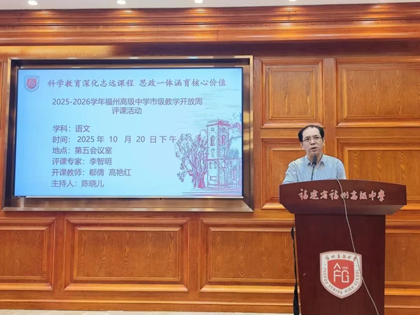 聚焦科學(xué)教育深化,探尋思政涵育路徑。為落實(shí)新課標(biāo)要求,推動(dòng)課堂教學(xué)創(chuàng)新與教師專(zhuān)業(yè)成長(zhǎng),10月20日至21日,福州高級(jí)中學(xué)舉行2025-2026學(xué)年市級(jí)教學(xué)開(kāi)放周語(yǔ)文學(xué)科活動(dòng),同期亦舉辦福州市高中語(yǔ)文高一教師崗位培訓(xùn)。此次活動(dòng),不僅是一次教學(xué)技藝的切磋,更是一場(chǎng)教育智慧的碰撞,吸引來(lái)自福高教育集團(tuán)校閩江學(xué)院附中和福州四十中,對(duì)口幫扶校莆田市秀嶼實(shí)驗(yàn)中學(xué),兄弟學(xué)校以及全市高一年段的語(yǔ)文教師齊聚一堂,共赴這場(chǎng)語(yǔ)文教研的盛宴。福建師范大學(xué)文學(xué)院劉心副教授在活動(dòng)中開(kāi)設(shè)專(zhuān)題講座,為活動(dòng)增添深厚的學(xué)術(shù)底蘊(yùn)。福州教育學(xué)院附屬第四小學(xué)辦公室主任、福建省中小學(xué)學(xué)科教學(xué)帶頭人劉穎老師,福州初中語(yǔ)文研訓(xùn)中心指導(dǎo)組成員林中恒老師,福州教育研究院李智明老師、蘭芳老師,福州“十四五”名師與骨干教師團(tuán)隊(duì)成員等專(zhuān)家蒞校指導(dǎo)。