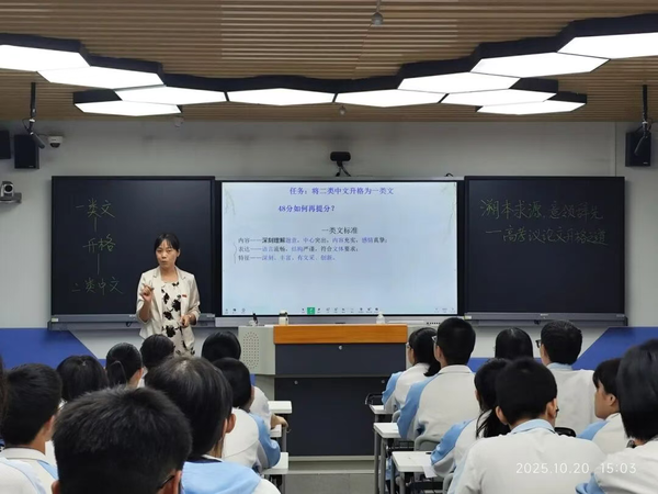 高艷紅老師開(kāi)設(shè)《溯本求源,意領(lǐng)辭先——高考議論文升格之道》寫(xiě)作指導(dǎo)課。課堂以2025年全國(guó)Ⅰ卷作文真題為依托,設(shè)計(jì)“我來(lái)評(píng)分—我來(lái)探求—我來(lái)升格”的遞進(jìn)式學(xué)習(xí)任務(wù),聚焦高考議論文從二類(lèi)中文向一類(lèi)文突破的教學(xué)難點(diǎn),引導(dǎo)學(xué)生深刻解讀“困境中發(fā)聲”的情境內(nèi)涵,實(shí)現(xiàn)從“重辭輕意”到“以意馭辭”的認(rèn)知躍升。