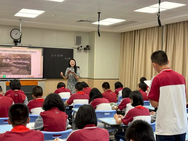 江倩瑩老師執(zhí)教《蘇州園林》一課,巧妙創(chuàng)設(shè)“設(shè)計(jì)宣傳冊(cè)”的學(xué)習(xí)情境。引導(dǎo)學(xué)生結(jié)合寫(xiě)作背景,以探尋園林之美、感受文字之妙為雙翼,并適時(shí)引入AI技術(shù)進(jìn)行對(duì)比驗(yàn)證,使學(xué)生直觀體悟說(shuō)明語(yǔ)言準(zhǔn)確性的重要價(jià)值,深刻理解應(yīng)如何突出說(shuō)明對(duì)象的特征。