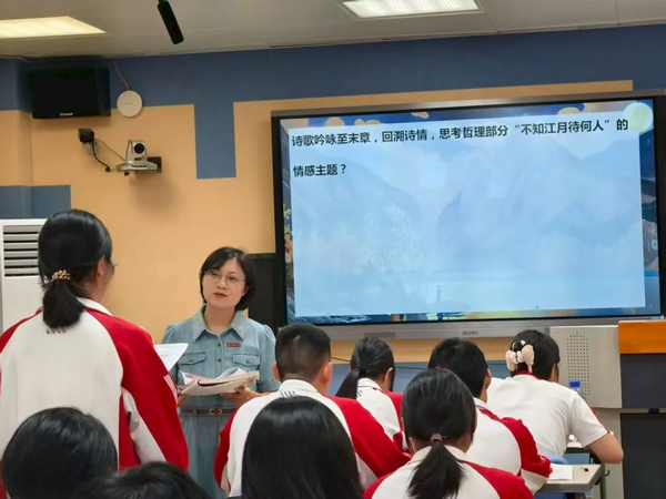 肖熹老師執(zhí)教《<春江花月夜>景理情三維度精讀》,課堂以“思接千載,情滿(mǎn)寰宇”為教學(xué)立意,圍繞“月的軌跡”展開(kāi)結(jié)構(gòu)化教學(xué),以“月升—月懸—月斜—月落”為線(xiàn)索,系統(tǒng)構(gòu)建“意象筑基、哲思映境、情韻縈意、意境歸融”四重教學(xué)篇章,引導(dǎo)學(xué)生逐層深入詩(shī)歌的景、理、情三維空間。課堂既有詩(shī)意流淌的審美浸潤(rùn),又有思維碰撞的理性光芒,體現(xiàn)“以學(xué)生為中心、以素養(yǎng)為導(dǎo)向”的教學(xué)理念。