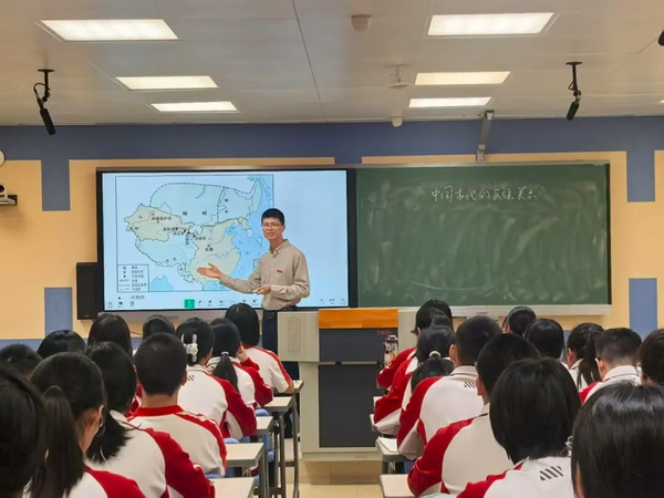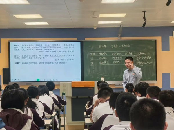紀(jì)業(yè)老師執(zhí)教《遼夏金元的統(tǒng)治》一課,他設(shè)計“北京都城發(fā)展”與“制度創(chuàng)新”為雙線索,巧妙結(jié)合歷史地圖與文本材料,在問題情境的分析過程中,提升學(xué)生學(xué)的歷史思維。在授課過程中,他有機融合遼朝南北面官制度和遼南京(今北京)的歷史情境,引導(dǎo)學(xué)生思考遼朝政治制度的獨特性與遼南京的重要戰(zhàn)略地位,他將猛安謀克制度和遷都燕京(改中都)這一重大歷史事件進(jìn)行聯(lián)系,對元朝行省制度、驛道系統(tǒng)以及元大都(今北京)的全國都城地位的關(guān)系進(jìn)行解構(gòu),讓學(xué)生建構(gòu)起對制度創(chuàng)新與民族交融的認(rèn)識。紀(jì)業(yè)老師創(chuàng)新性地將AI工具引入課堂,對比學(xué)生結(jié)論與AI作答,培養(yǎng)學(xué)生的批判性思維。此次公開課以小切口展現(xiàn)統(tǒng)一多民族國家發(fā)展的大歷史,精準(zhǔn)落實課標(biāo)要求,是“以史育人”理念的一次生動實踐。